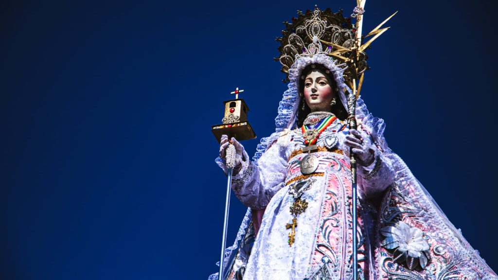 What truly makes this procession unique is the coexistence of religious figures with Andean traditions. In fact, the people who participate in the festivity are not only witnesses of a religious act, but they are also part of a ceremony full of symbolism. Here, the cultural crossbreeding between Christianity and Inca customs is evident. Moreover, the dances and music of the Andean communities, such as the dance of the Q’ochas or the dance of the Ñustas, accompany the religious images, creating a vibrant and deeply spiritual atmosphere.
