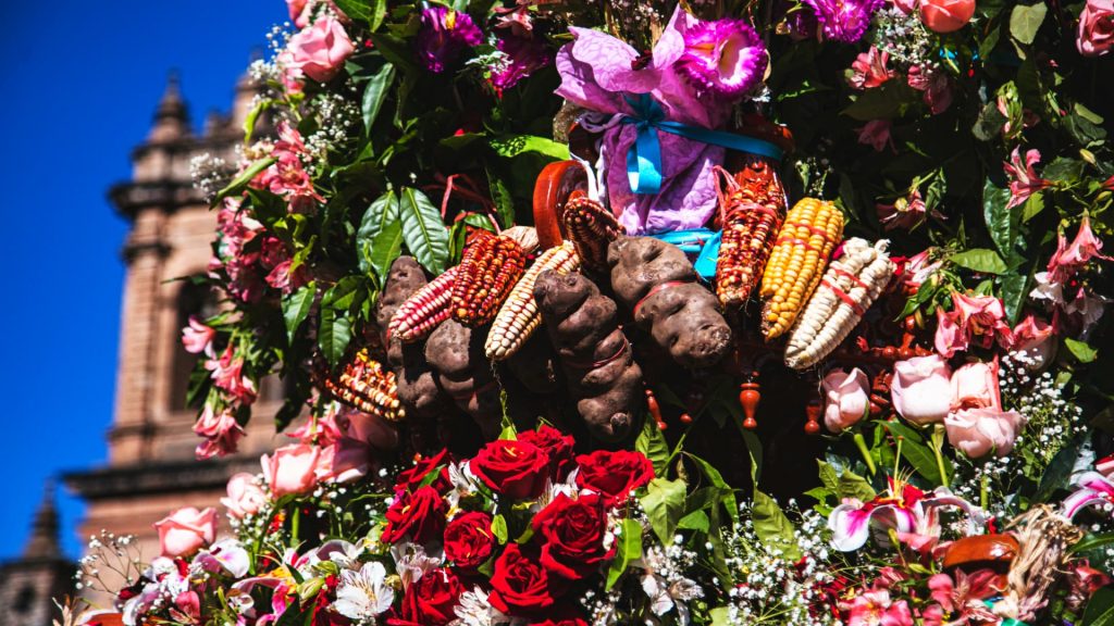 As in all great Peruvian festivities, Corpus Christi in Cusco would not be complete without a special culinary offer. During these days, the plazas and streets of the city fill with vendors offering traditional dishes that have a strong connection with the Andean tradition. The flavors of Cusco’s gastronomy stand out, and the festivity provides the perfect opportunity to enjoy delicious tamales, chiriuchu (a typical dish prepared with cold meats, corn, potatoes, and other local ingredients), and special breads that are only prepared at this time of year.